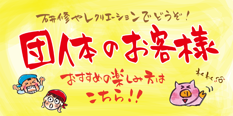 個人のお客様はもちろん、学校・PTA・福祉施設・放課後デイサービス・会社などの団体様もお待ちしております!